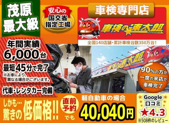 茂原 東金で車検4.0万!茂原 東金で車検年6千台